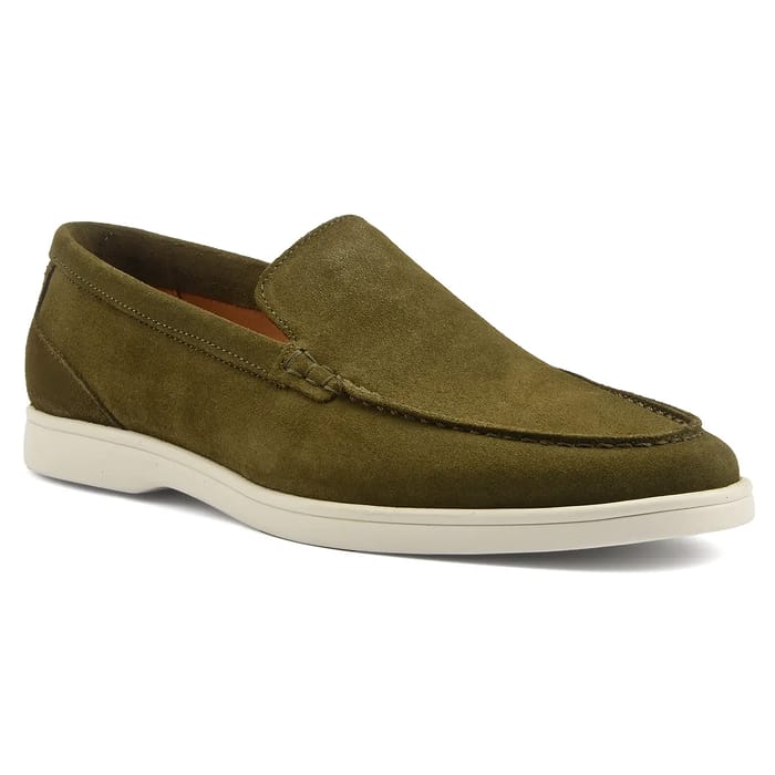 Les Mocassins classiques Cabril de la marque Mannori sont conçus pour un style élégant et raffiné. Ces chaussures de luxe sont dotées d'un dessus et d'une tige en daim kaki, offrant un aspect chic et formel. Le cuir velours du mocassin est finement travaillé, avec des coutures visibles le long des bords pour un style sophistiqué. Un petit straplet décoratif sur le côté ajoute une touche de sophistication. Le cuir doublure intérieure en couleur contraste, probablement brun ou orange, ajoute une touche de contraste. Les semelles intérieures et extérieures en cuir et en gomme respectivement offrent un confort et un style inégalés. Les Mocassins Cabril sont parfaits pour les occasions formelles, les soirées ou les événements, tout en étant également adaptés pour un usage quotidien. -