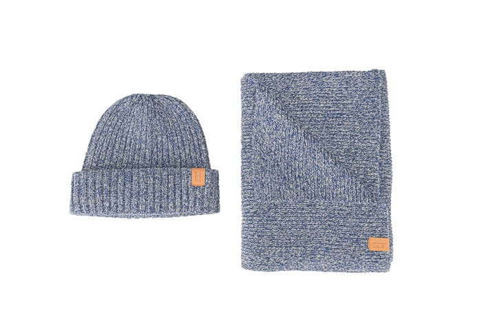 JEFF & JACK ECHARPE ET BONNET BLEU CHINE -