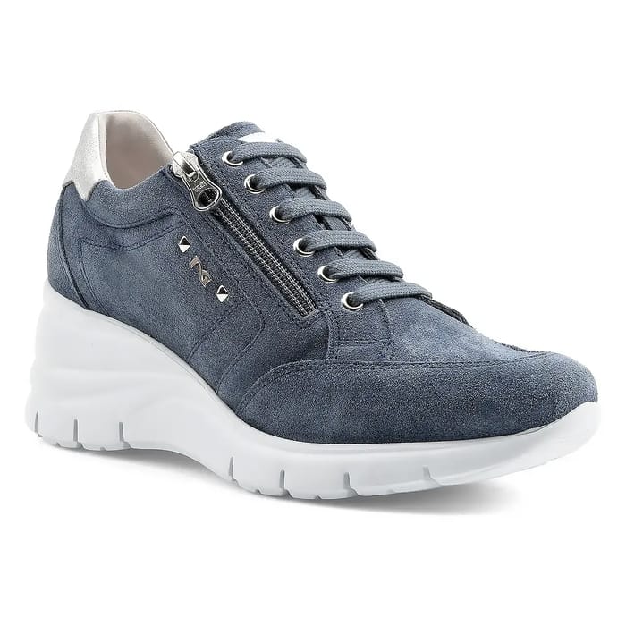 Les Nero Giardini Agosta s'imposent comme une chaussure tendance et élégante, alliant confort et style affirmé. Conçues avec un dessus en daim bleu, elles offrent une esthétique raffinée et un toucher doux. La tige en cuir velours est rehaussée d'une doublure intérieure en cuir gris clair, apportant une sensation de bien-être immédiat. Une semelle intérieure amovible en cuir permet d'ajuster le confort selon les besoins. Le talon compensé de 60 mm, soutenu par une semelle en gomme texturée, offre une stabilité discrète tout en allongeant la silhouette. Des œuvres métalliques pour les lacets et une fermeture à glissière latérale ornée du logo "RAC" en lettres dorées ajoutent une touche audacieuse. Ce modèle, issu de la gamme mode italienne, convient aussi bien pour les sorties que pour une utilisation quotidienne. Sa silhouette épurée et son design italien font de ces baskets une pièce incontournable pour celles qui recherchent un équilibre parfait entre élégance et praticité. -