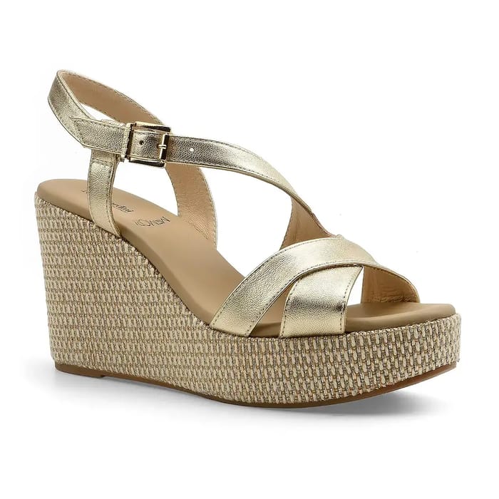 Les sandales compensées Malfa de la marque Nero Giardini allient élégance intemporelle et audace italienne. Conçues dans un cuir métallisé brillant aux reflets dorés, elles captent l’esprit raffiné du *Made in Italy*, où chaque détail est pensé pour sublimer la silhouette. La semelle en gomme, haute de 90 mm, offre une stabilité parfaite pour des soirées ou des sorties, tandis que la doublure en cuir et la semelle intérieure garantissent un confort optimal, même après de longues heures portées. Le design épuré, marqué par des brides élégantes, met en valeur la finesse du travail artisanal. La couleur or, à la fois lumineuse et sophistiquée, s’accorde avec les tenues les plus variées, qu’elles soient décontractées ou légèrement habillées. Nero Giardini, synonyme d’excellence et d’innovation, signe ici une pièce qui incarne à la fois le style et le confort, pour celles qui recherchent l’exceptionnel au quotidien. -