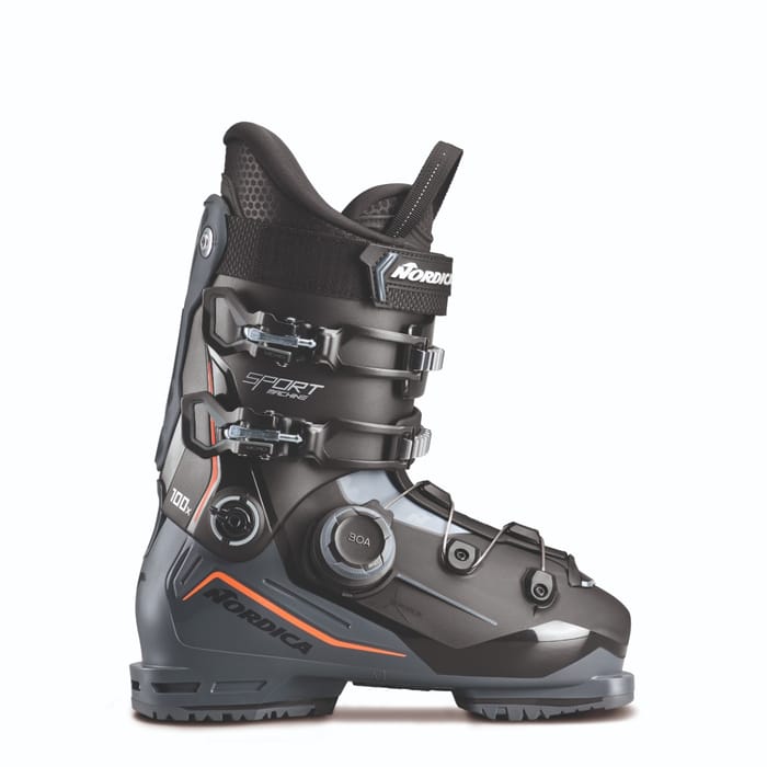 Les chaussures de ski M's Sportmachine 3 100 X Boa (GW) de la marque Nordica allient style et performance pour les amateurs de sports d’hiver. Conçues dans une esthétique fonctionnelle et technique, elles s’imposent par leur design épuré en noir et gris, souligné par des touches orange sur les côtés. Le dessus en plastique offre une résistance optimale, tandis que la doublure synthétique assure un confort durable. La chaussure se distingue par son système de fermeture Boa avec un cadran marqué 80A, garantissant un ajustement précis et une compression uniforme. Son empeigne rigide et son flex équilibré assurent un maintien optimal, essentiel pour le ski et le snowboard. L’isolation renforcée protège efficacement du froid, et la semelle robuste assure une stabilité accrue sur toutes les neiges. Idéale pour les sorties en montagne, cette chaussure allie légèreté, robustesse et contrôle pour une expérience de glisse maîtrisée. -