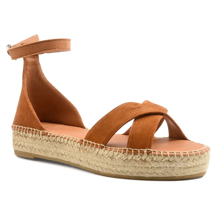 Les sandales plates Odaje Catherine sont conçues pour un style décontracté et estival. Le dessus et la tige sont en daim, offrant une texture douce et confortable. La doublure est en cuir, ajoutant une touche de luxe. La semelle intérieure est également en cuir, tandis que la semelle extérieure est en gomme, offrant une légèreté et une respirabilité. Les sandales sont ornées de détails en cuir velours, donnant un aspect élégant. La couleur cognac est idéale pour les vacances ou les journées ensoleillées. Ces sandales plates sont parfaites pour une plage, des vacances ou un port quotidien, grâce à leur confort et à leur mode. -