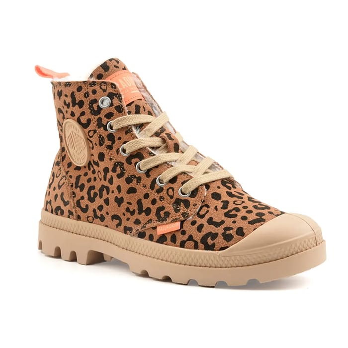 Bottines Pampa Hi Zip WL de la marque Palladium. Ces bottines décontractées et robustes sont conçues pour les saisons froides, les activités extérieures et le travail. Leur dessus et tige en nubuck offrent un aspect confortable et résistant. La doublure textile assure un confort optimal. Les semelles intérieures en textile sont amovibles pour une facilité de maintenance. Les semelles en gomme offrent une protection solide. Les bottines sont équipées de lacets en toile avec fermeture éclair, facilitant ainsi l'ajustement. Leur couleur léopard, avec des taches de léopard en cuir nubuck, ajoute un élément de style. Les bottines Pampa Hi Zip WL sont idéales pour les automnes et hivers, les activités extérieures et le travail. -