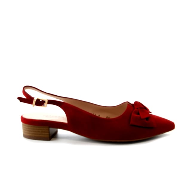 Les chaussures Adalia de la marque Peter Kaiser allient élégance et confort dans un design chic. Confectionnées dans un daim rouge intense, elles présentent une tige en daim avec une finition soignée et un toucher doux. L'aspect raffiné se dévoile à travers leur silhouette en slingback, dotée d'une bride en cuir velours ornée d'une boucle dorée, ajoutant une touche de sophistication. Une bride décorative en forme de nœud orne le devant près du bout, renforçant le caractère mode de ces chaussures. La semelle en gomme légère et souple assure une bonne stabilité, tandis que la semelle intérieure en cuir assure un confort optimal pour une journée entière. Le talon de 25 mm apporte une hauteur discrète, idéale pour les soirées, les événements ou le bureau. Ces chaussures s'inscrivent dans une gamme de produits élégants, parfaites pour celles qui recherchent un style affirmé et une touche de distinction. -