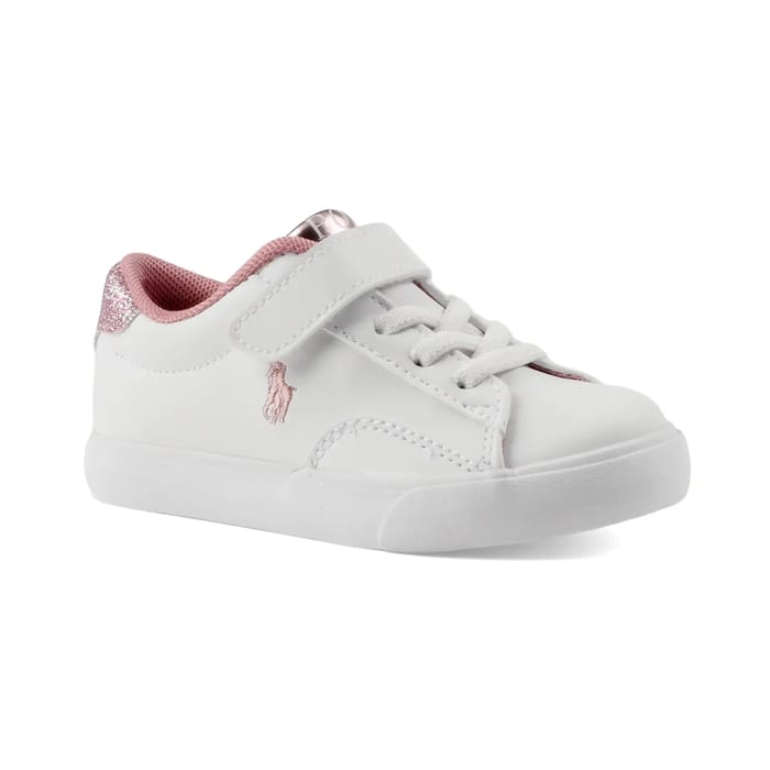 Les sneakers THERON de Polo Ralph Lauren allient style et praticité pour un usage quotidien. Conçues en synthétique, elles offrent une légèreté et une facilité de mobilité idéales pour les enfants. Leur système de fermeture à Velcro permet un ajustement rapide et sécurisé, tandis que les détails discrets comme l’empiècement textilé et la semelle en gomme renforcent leur durabilité. La couleur blanche, rehaussée de touches de rose et d’un logo brodé, apporte une touche élégante et ludique, parfaite pour les loisirs ou les moments décontractés. Polyvalentes et confortables, ces sneakers s’intègrent aussi bien dans une tenue sportive que dans un look plus urbain. -