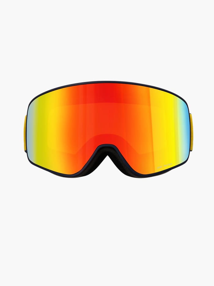 Les lunettes de ski RUSH de Red Bull offrent une protection optimale et une performance accrue sur les pistes en hiver. Conçues pour le ski et le snowboard, elles s'inscrivent dans une gamme technique et fonctionnelle. Le masque dispose d'une isolation efficace et d'une protection complète contre les intempéries. Grâce à un verre en une seule pièce avec un transfert de couleur progressif du rouge au haut vers le jaune puis au bleu vers le bas, les lunettes assurent une visibilité optimale selon les conditions de lumière. Le cadre en noir est doté d'un padding discret aux bordures pour un ajustement confortable et une tenue stable. Des accents jaunes sont intégrés aux côtés du cadre près des oreilles. Un texte de marque en lettres blanches se trouve en dessous de l'angle inférieur droit du verre. Le design bleu marine apporte une touche moderne et élégante. -