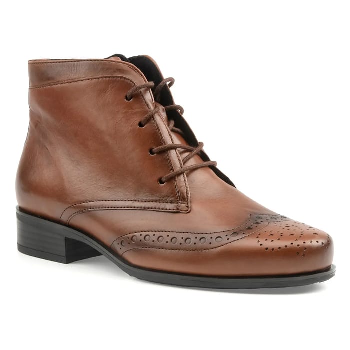 Les bottines Amy de la marque Semler sont des chaussures de style décontracté et robuste, conçues pour les saisons froides. Ces bottines à lacets en cuir cognac sont idéales pour l'automne et l'hiver, ainsi que pour les activités extérieures et le travail. Leur conception privilégie le confort, le maintien et la protection des pieds. Les bottines Amy présentent un style élégant avec des détails de brogue et des perforations sur le capuchon, ainsi que des coutures décoratives autour du vamp. Les lacets sombres sont passés à travers des œillets métalliques, ajoutant un touch de sophistication. Le cuir cognac est finement travaillé, avec des plis visibles qui donnent une texture unique à la surface supérieure. La semelle noire, en caoutchouc, garantit une durabilité et une protection optimales pour les pieds. Les bottines Amy de Semler sont une excellente option pour ceux qui recherchent une chaussure robuste et confortable pour les saisons froides. -