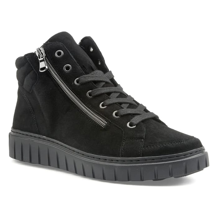 Sina, les Sneakers montantes de Semler, sont un choix de mode urbain et tendance pour les jours de pluie ou de froid. Conçues pour une utilisation quotidienne, ces chaussures sont idéales pour les sorties urbaines ou les activités de loisirs. Leur style montant, associé à une couleur noire, leur donne une allure robuste et élégante. La semelle épaisse et dentelée assure un maintien solide, tandis que les lacets métalliques et les œillets permettent une ajustement précis. La fermeture à glissière sur le côté facilite l'habillage et le déhabillage. Le cuir souple et résistant de la partie supérieure offre à la fois un style élégant et une durabilité. Les coutures renforcées autour de la partie avant et le long des côtés contribuent à la solidité de la chaussure. La Sina est un choix polyvalent pour les amateurs de mode qui recherchent une chaussure robuste et élégante pour leurs sorties quotidiennes. -