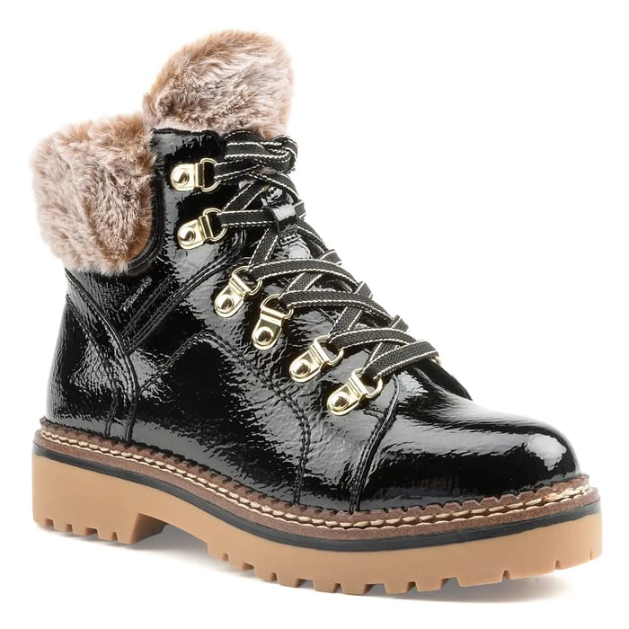 Les bottines Adalena de la marque Tamaris offrent un mélange parfait entre élégance et confort. Conçues pour les jours froids, ces bottines chaudes en synthétique verni présentent un dessus et une tige en synthétique brillant. La doublure textile chaude garantit une chaleur optimale, tandis que la semelle intérieure textile chaude et amovible permet une adaptation personnelle à votre confort. La semelle en synthétique assure une durabilité et une résistance à l'usure. Les talons mesurent 35 mm et sont idéaux pour les occasions quotidiennes. Les détails de la bottine chaude, tels que les visibles coutures et les lacets en noir, ajoutent une touche de style et de sophistication. Les bottines Adalena de Tamaris sont conçues pour répondre aux besoins de la femme moderne, offrant un équilibre parfait entre confort, mode et durabilité. -