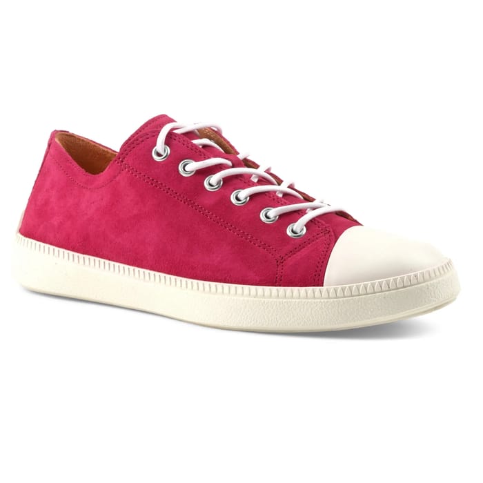 Ces sneakers Think TURNA 559 allient élégance et confort pour un style intemporel et polyvalent. Conçues dans un cuir velours végétal sans chrome, elles offrent une texture douce et soyeuse, idéale pour un usage quotidien ou des balades en ville. La doublure et la semelle intérieure, également en cuir végétal et amovible, garantissent une respirabilité optimale et un ajustement parfait. La semelle en gomme, dotée d’un motif texturé sur les bords, assure une stabilité et un amorti adaptés à chaque pas. Les détails comme le basket en cuir velours végétal et les lacets blancs renforcent l’esthétique minimaliste et tendance de ce modèle. Disponible en fuchsia, cette paire s’intègre parfaitement dans une garde-robe moderne, alliant mode et praticité pour tous les moments de la journée. -