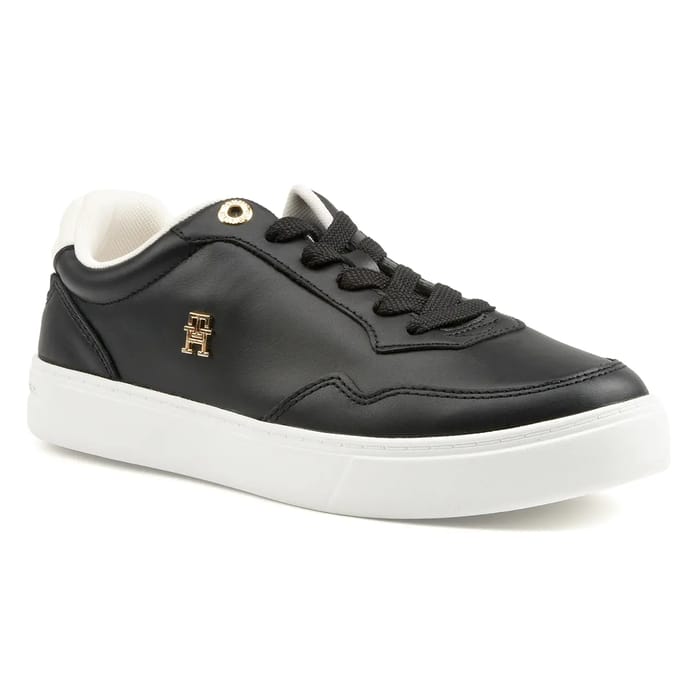 Découvrez la paire de sneakers ELEVATED COURT SNEAKER de Tommy Hilfiger, une pièce de mode intemporelle et élégante. Conçue dans un cuir de qualité, cette sneaker s'inscrit dans une gamme de produits tendance et mode, idéale pour les jours quotidiens, les promenades ou les activités de loisirs. Son design sobre et sophistiqué s'exprime par des coutures blanches aux côtés et au sommet du pied, qui ajoutent une touche de modernité. Un emblème en métal doré est fixé à côté de la talon, apportant un détail élégant. Le tige est complété par un tissu doux au fond, offrant un confort optimal. La semelle, en caoutchouc synthétique, assure une polyvalence et un aspect fonctionnel de confort. Avec ses 30 mm de hauteur, elle allie élégance et stabilité. Cette paire de sneakers noires s'adapte parfaitement à un style casual chic, intemporel et élégant. -
