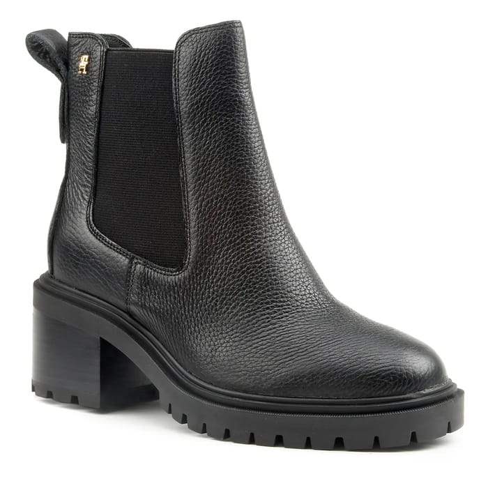 Bottines Tommy Hilfiger TH LEATHER CHELSEA CLEATED HEEL en cuir noir confortables et robustes pour l'automne et l'hiver.