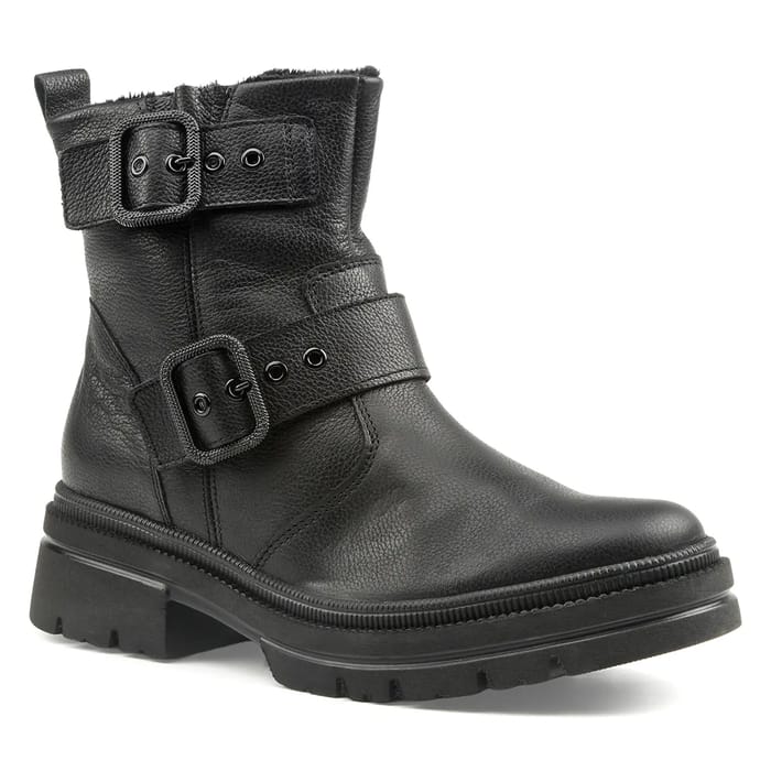 Les H-Amara de Waldlaufer offrent un confort optimal grâce à leur tige en cuir épais et à leur doublure en tissu chaud. Dotées d'une semelle interne amovible et en tissu chaud, ces bottines assurent un ajustement personnalisé et une sensation de chaleur immédiate. La semelle en caoutchouc synthétique offre une stabilité et une durabilité remarquables, tandis que le talon de 40 mm apporte une bonne hauteur pour un pied stable. Dotées d'une fermeture éclair et de deux lacets ajustables avec des fermoirs métalliques, elles s’adaptent parfaitement à la forme du pied. Avec un aspect robuste et décontracté, ces bottines sont idéales pour les trajets quotidiens, les balades en moto ou les activités en saison fraîche. Leur design élégant, à la fois fonctionnel et durable, les rend parfaites pour un usage quotidien dans des conditions variées. -