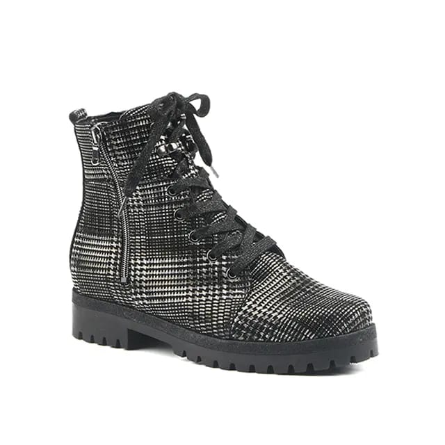 Les bottines Hanako 15 de la marque Waldlaufer allient élégance et confort au quotidien. Confectionnées dans un cuir imprimé aux motifs multicolores, elles s'inscrivent dans une esthétique décontractée et raffinée. La tige en cuir est complétée par une fermeture éclair latérale pour une mise en scène facile, tandis que les lacets noirs passent par des œuvres métalliques, renforçant le design urbain. L'intérieur en textile chaud assure un confort optimal toute la journée, et la semelle intérieure amovible permet une adaptation personnalisée. La semelle synthétique à motif rigide offre une stabilité discrète, idéale pour le travail, les sorties ou les usages quotidiens. Ce modèle à talon de 35 mm allie style et protection, parfait pour une tenue à la fois moderne et chaleureuse. -